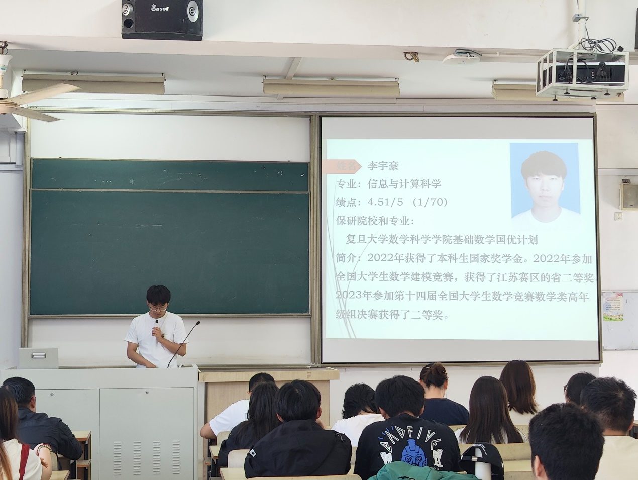 李宇豪同学则通过自己的保研经历,为大家介绍了保研的相关信息,包括参加夏令营的条件、联系导师的技巧以及面试时可能遇到的问题。他还特别提醒同学们要关注学习几门关键专业课,如实变函数和泛函分析。